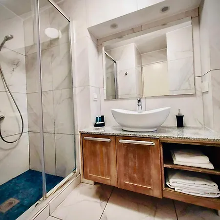 Vart och ett av 8 rum har strykjärn med strykbräda, Wi-Fi och luftkonditionering. Badrummet är utrustat med tvättställ, duschkabin och dusch.